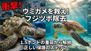 魚・海洋生物 【閲覧注意】ウミガメからフジツボ除去救出劇。痛々しい姿と「正しい保護」の形 フジツボに覆われ、自由に泳げなくなったウミガメの衝撃的な実態と、専門家による救出リハビリの全貌を解説。素人判断の危険性と正しい支援方法を学びます。 2026.03.01 魚・海洋生物