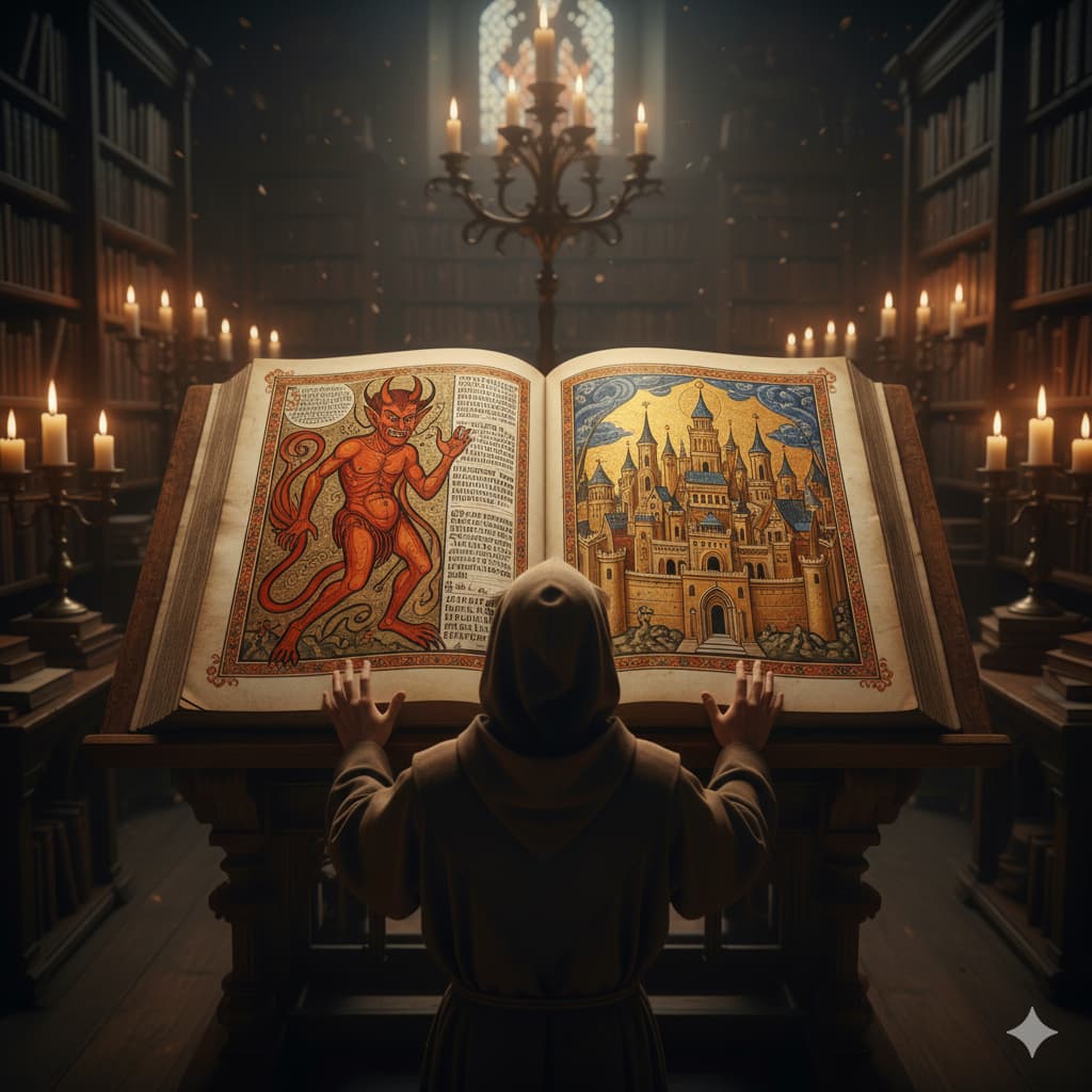 ギガス写本が「悪魔の聖書」と呼ばれる最大の理由、それは中世を通じて語り継がれてきた背徳的な起源の物語にあります。この物語こそが、写本の謎めいた魅力を形作っています。