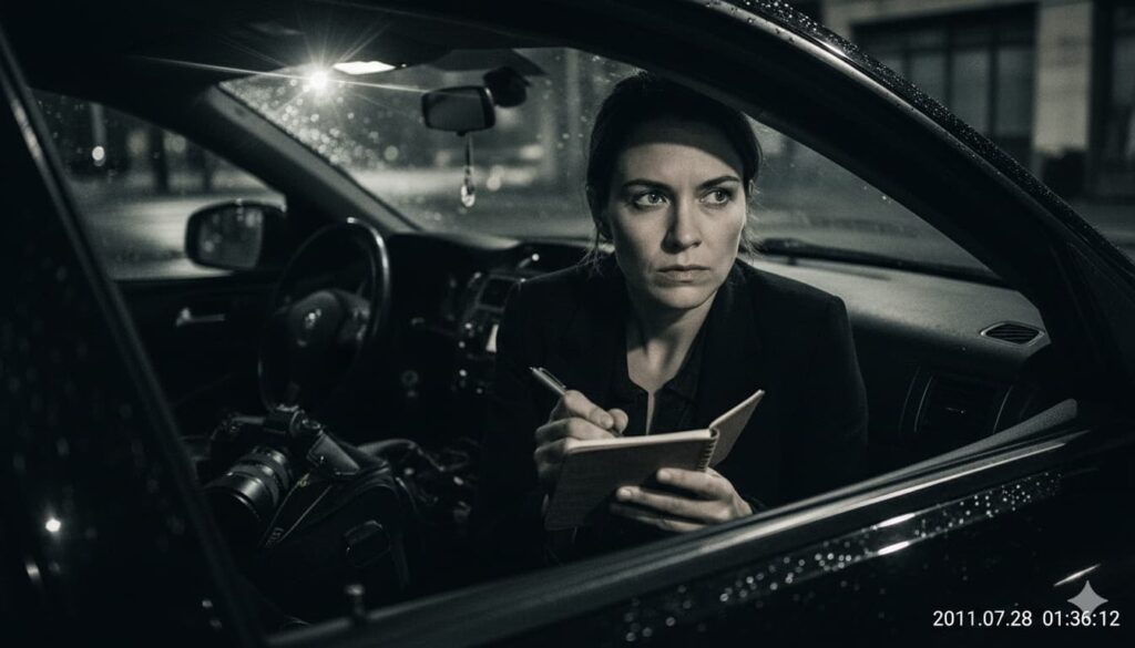 ジェサミンは写真家としてのキャリアを一時中断し、なんと「私立探偵学校」に入学します。プロの探偵から尾行術、監視のテクニック、情報の収集方法を学び、彼女は「カメラ」を芸術の道具から、真実を暴くための「武器」へと持ち替えたのです。