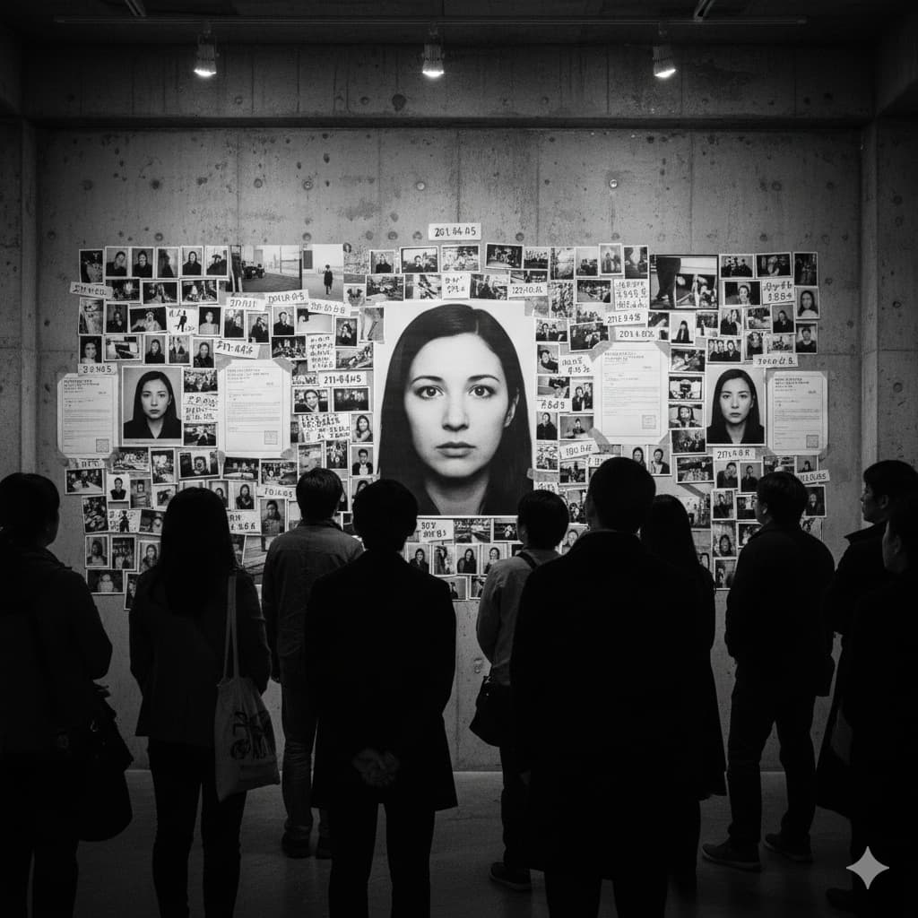 2014年、サンフランシスコのギャラリーで、彼女の個展『Dear Stranger,』が開催されました。会場の壁を埋め尽くしたのは、エリン・ハーツが「ジェサミン・ロベル」として生きた証拠の数々。監視写真、警察のレポート、そして巨大に引き伸ばされたエリンの顔写真。