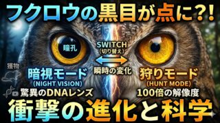 動物 フクロウの瞳孔が瞬時に変わる驚異のメカニズム:暗闇の支配者が持つ「随意支配」と「DNAレンズ」の科学 フクロウの目が劇的に変化する理由を科学的に解説。自分の意思で操る瞳孔や、最新研究で判明したDNAの驚きの役割など、夜の狩人が持つ究極の視覚能力に迫ります。 2026.04.08 動物