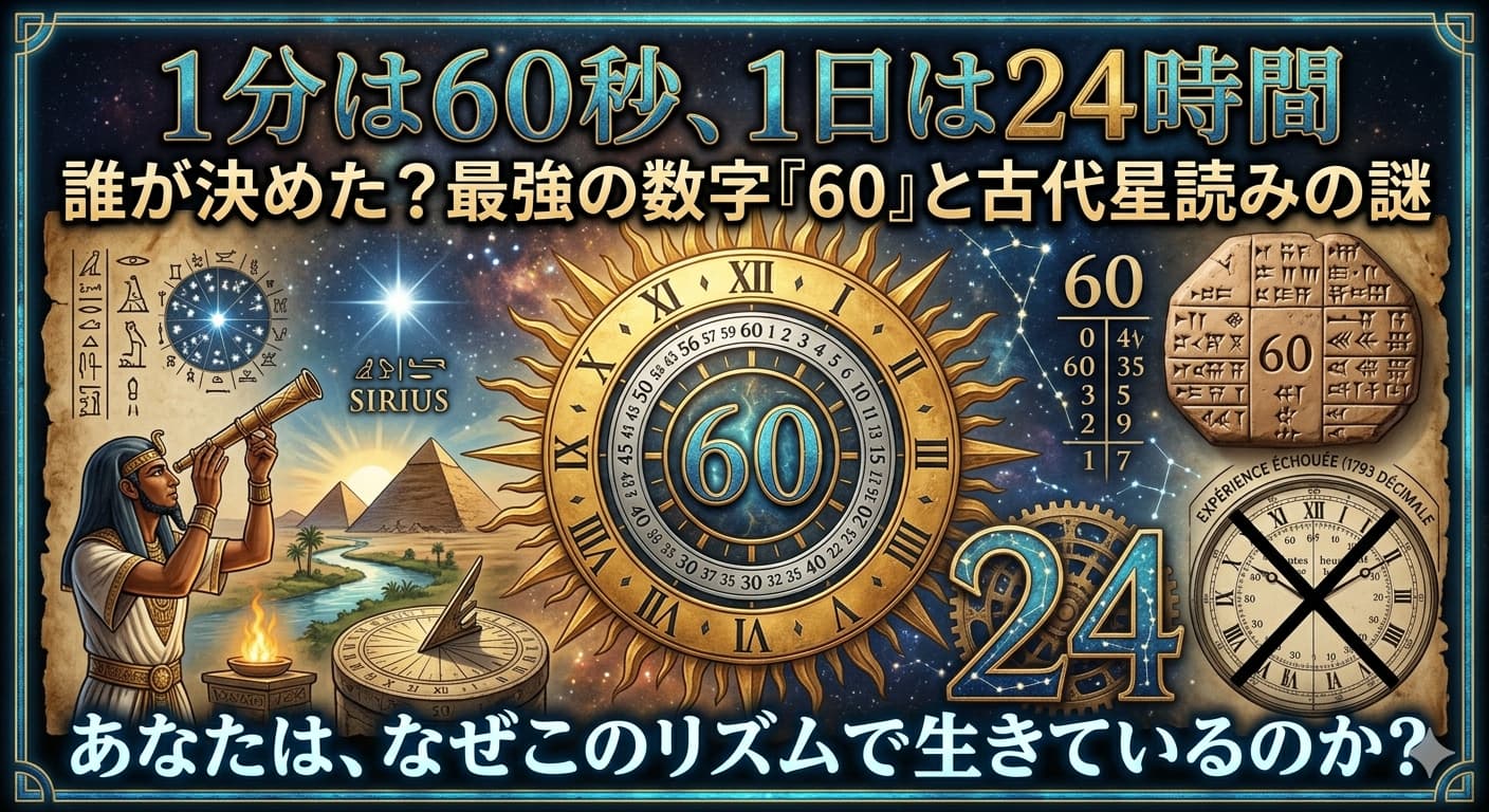 フランス革命でさえ変えられなかったこのシステムは、私たちの生活、身体のリズム、そして文明そのものに深く刻まれています。次に時計を見る時は、その秒針が刻むリズムの裏側に、古代エジプトやバビロニアの知恵が今も生きていることを感じてみてはいかがでしょうか。